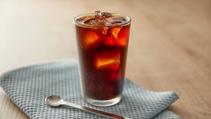 食材: · 咖啡豆 · 水 · 冰塊 步驟: 1. 在水箱注水 2. 確認咖啡豆槽至少半滿。在濾網籃中放入一張 4 號濾紙或免換濾網 3. 開始沖煮咖啡 4. 將冰塊放入杯中 5. 將咖啡倒入杯中